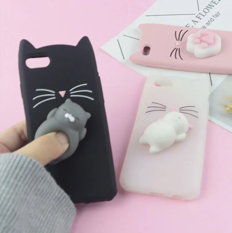 Product Name: 3D lindo Japón Glitter barbudo gato carcasa para iPhone 6 6S 7 8 Plus X XR XS Max blanshy Cat cubierta bolsas de teléfono móvil