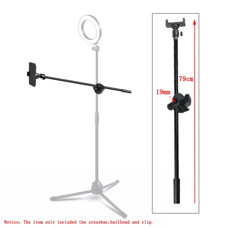 Product Name: Fotografía 67 cm 26,38 \"brazo Boom + abrazadera de rueda + cabeza de bola + soporte de teléfono celular Clip de alta calidad de la barra transversal foto estudio Accesorios
