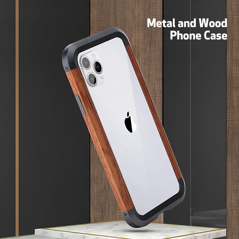 Product Name: Funda de teléfono a prueba de golpes con marco de Metal y madera para Iphone 11 11pro 11pro max Bumper Back Bover funda de teléfono móvil con personalidad Simple