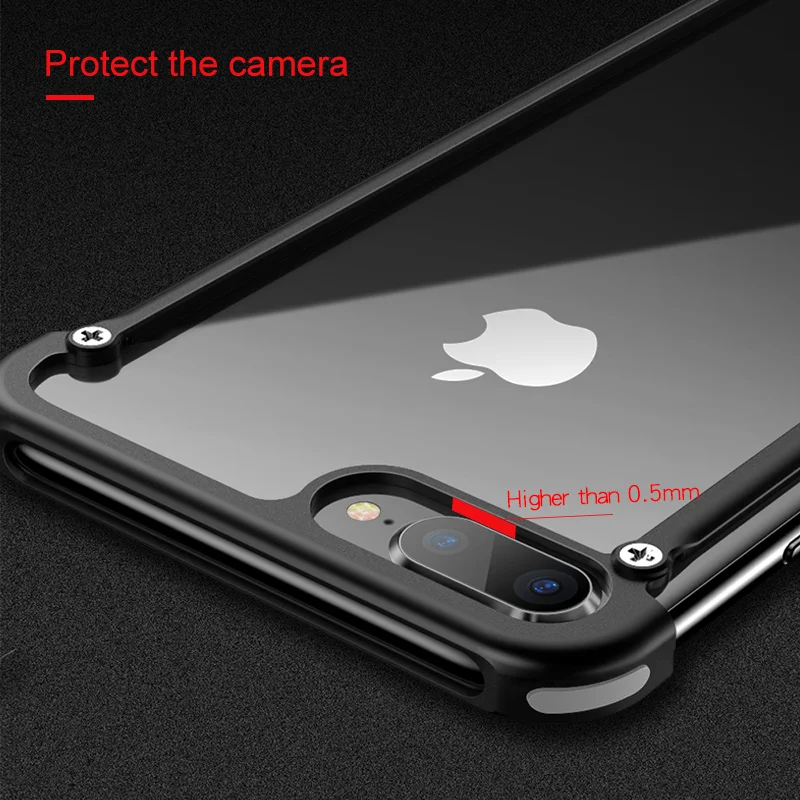 Product Name: OATSBASF funda de Metal Airbag para iPhone 8 funda personalidad Airbag carcasa para el iPhone 8 Plus parachoques de Metal con película de vidrio de regalo