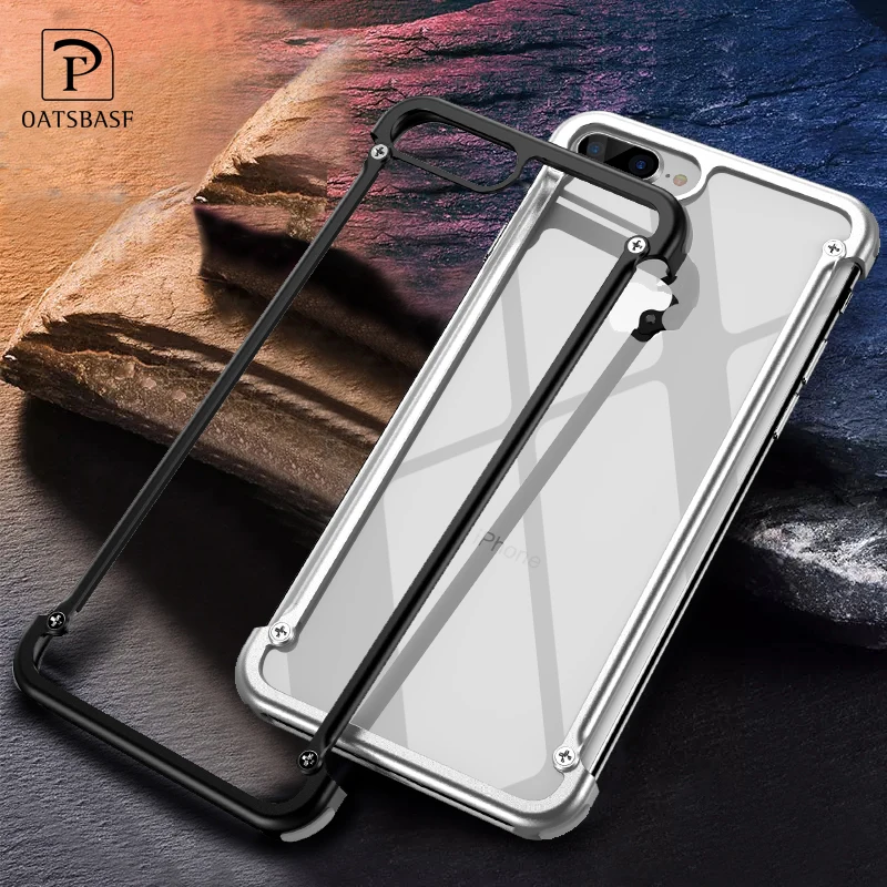 Special Offer OATSBASF funda de Metal Airbag para iPhone 8 funda personalidad Airbag carcasa para el iPhone 8 Plus parachoques de Metal con película de vidrio de regalo Discount 25% Today!