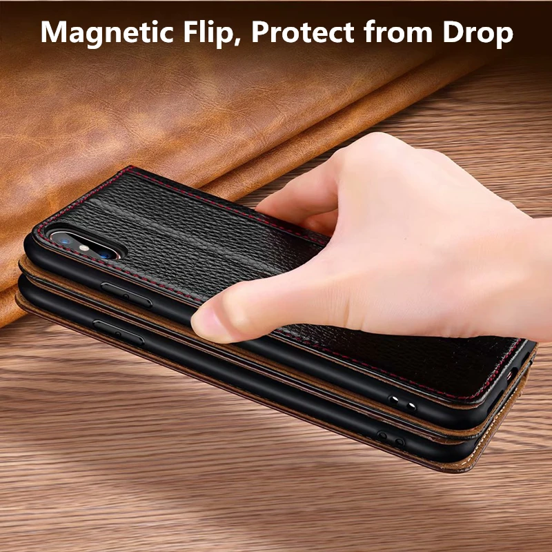 Product Name: Para iphone X XR XS Max 7 8 Plus Funda de cuero genuino funda magnética Flip Wallet Funda de cuero Real para iphone bolso de cuero completo XS Max