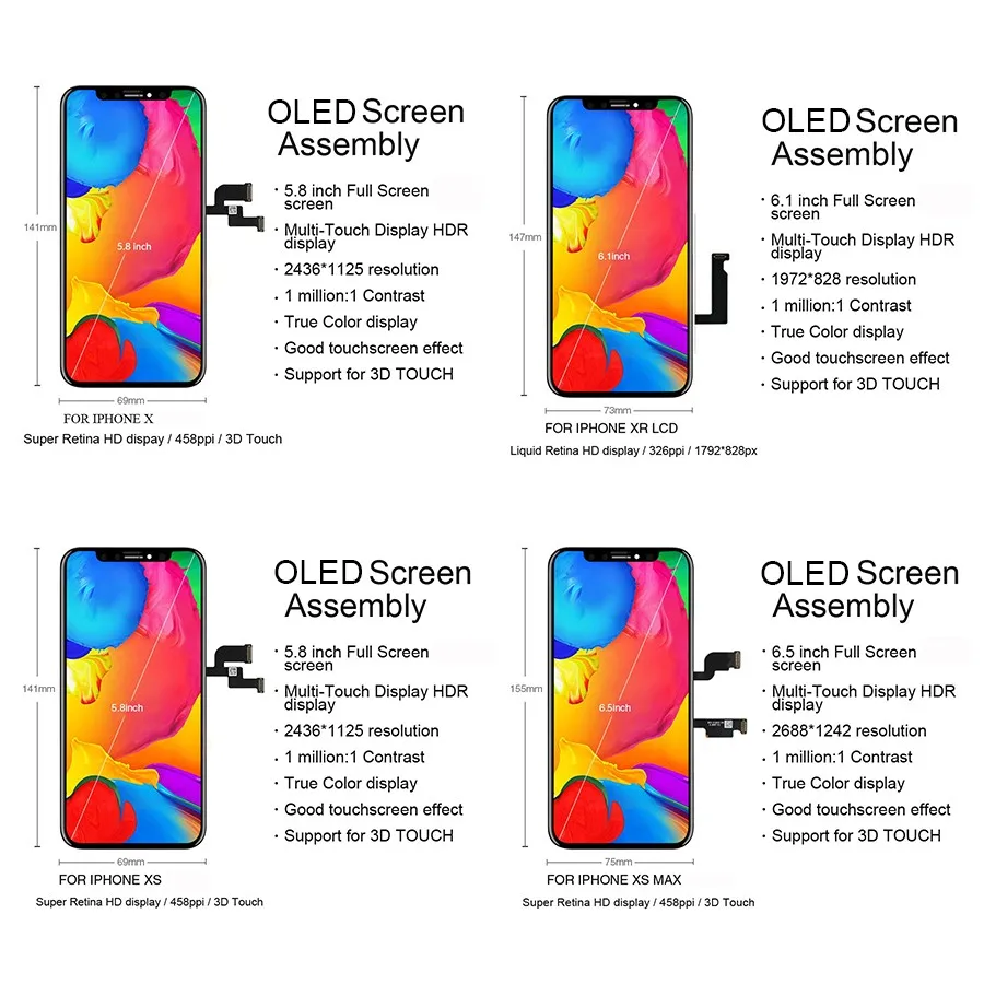 Product Name: Pantalla Original de pinhid LCD para iPhone X XR Xs Max LCD Dispaly Oled TFT OEM digitalizador de calidad pantalla LCD de repuesto