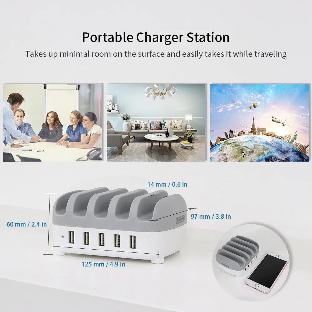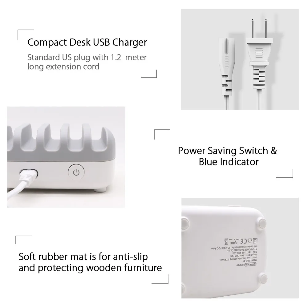 Product Name: NTONPOWER 5 puertos USB cargador de escritorio estación de carga 5V 2.4A para teléfono móvil y tableta con soporte de teléfono