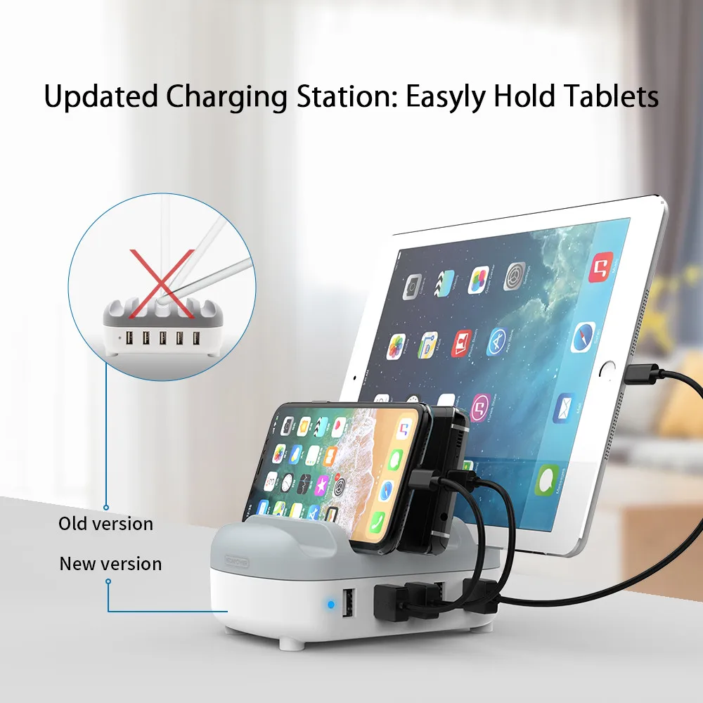 Special Offer NTONPOWER 5 puertos USB cargador de escritorio estación de carga 5V 2.4A para teléfono móvil y tableta con soporte de teléfono Discount 50% Today!