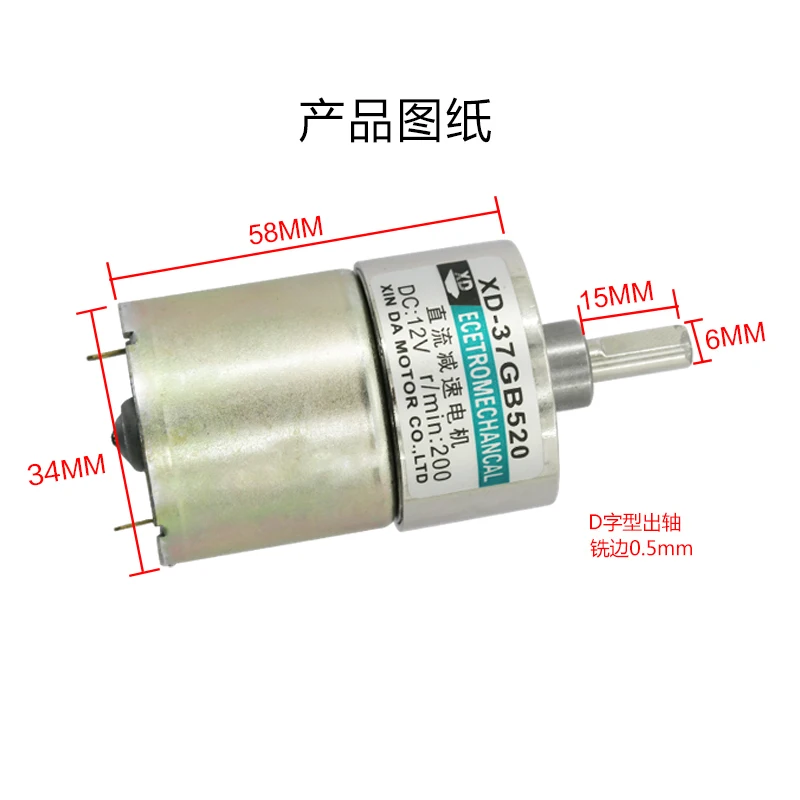 Product Name: Motor DC de cepillo miniatura 12 V motor de baja velocidad 24 V motor de engranaje lento 37GB520