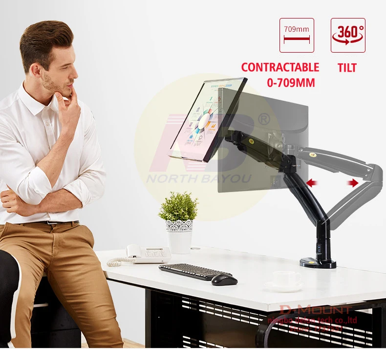 Product Name: NB F100A muelle de Gas 22 35 \"brazo de soporte para Monitor de pantalla 360 soporte giratorio soporte ergonómico para monitor con 2xUSB3. 0