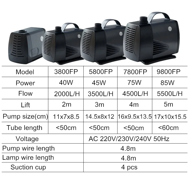 Product Name: 220V acuario estanque de peces LED bomba de agua bomba sumergible fuente de jardín con luz LED cambiante fuente fabricante 40W 2000L H