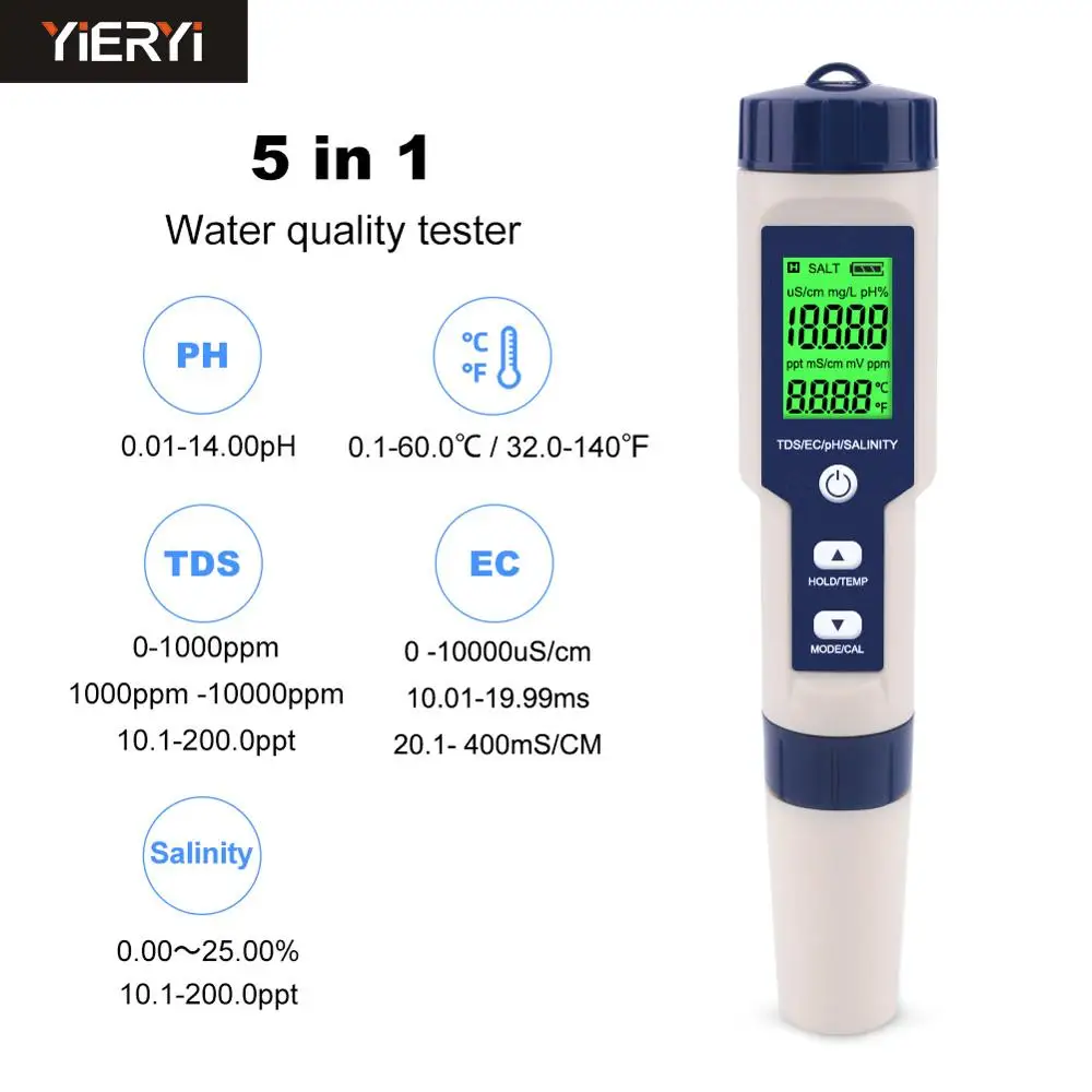 Product Name: Medidor Digital de calidad del agua TDS EC PH salinidad temperatura 5 en 1 para piscinas, agua potable, acuarios