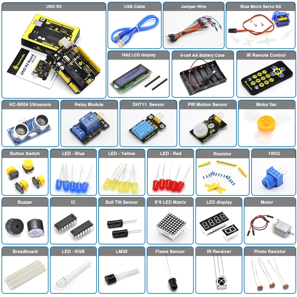 Product Name: 2019 ¡Nuevo! Versión actualizada keyesstudio Basic Starter Kit V2.0 (UNOR3 Board) con caja de regalo para Arduino Kit + PDF (en línea)