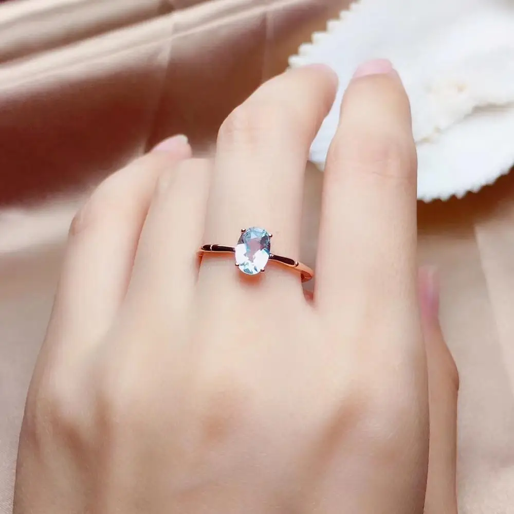 Product Name: Anillo de Aguamarina Natural, plata 925, estilo simple, gemas de 1 quilates, calidad limpia, precio barato