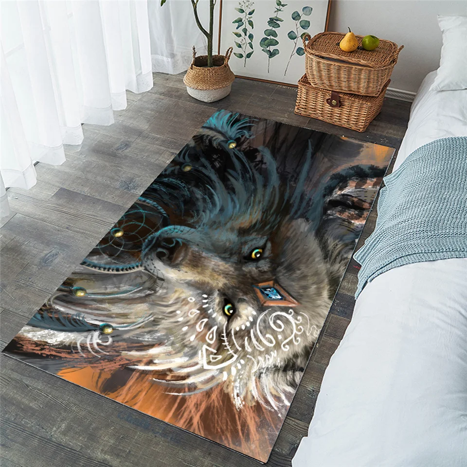 Product Name: Wolf Warrior de SunimaArt alfombra grande alfombras de zona de lobo para sala de estar Dreamcatcher alfombra de suelo antideslizante TAPI 152x244cm Dropship