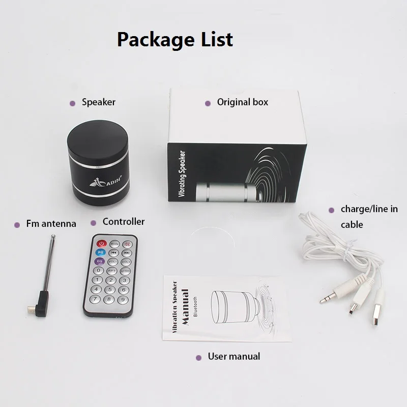 Product Name: Adin 15W metal vibración altavoz inalámbrico bluetooth fm radio HiFi bajo 3D estéreo envolvente TF Subwoofer altavoces Control remoto