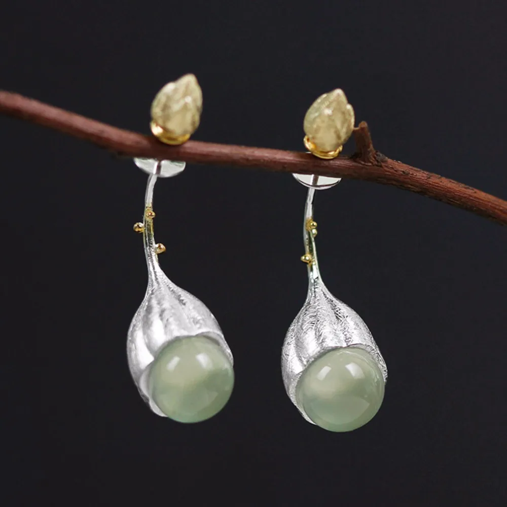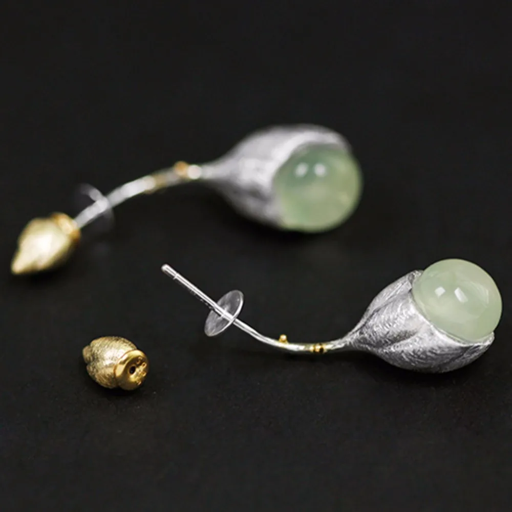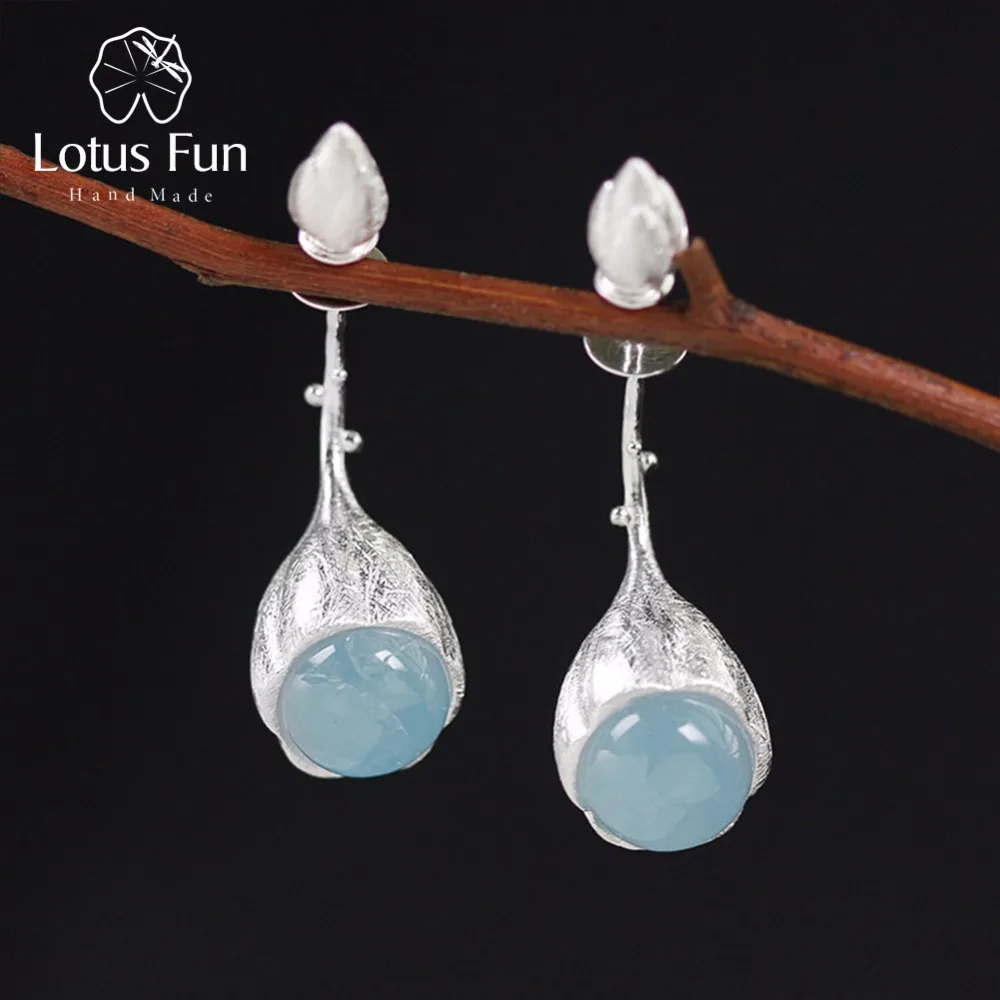 Product Name: Lotus Fun Plata de Ley 925 auténtica hecho a mano con piedra natural joyería fina elegante Lotus Buds pendientes colgantes para mujer