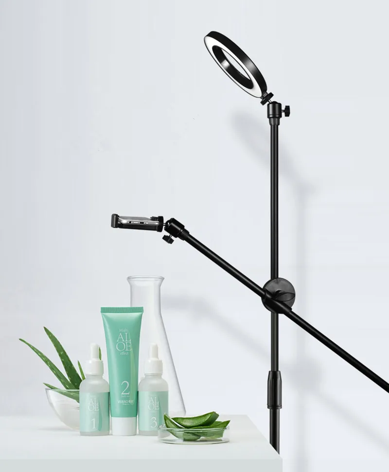 Product Name: Dimmable Beauty LED Fill luz anillo lámpara + ajustable teléfono fotografía disparo soporte + Boom brazo foto estudio Kits para vivo
