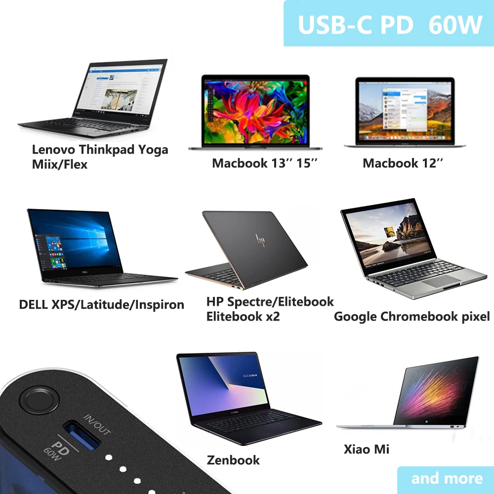 Product Name: 90W Dual USB C banco de potencia portátil cargador portátil para nuevo MacBook Pro DELL XPS iPhone Xiao Mi Pro HP Tipo de iPhone C portátiles teléfono QC PD