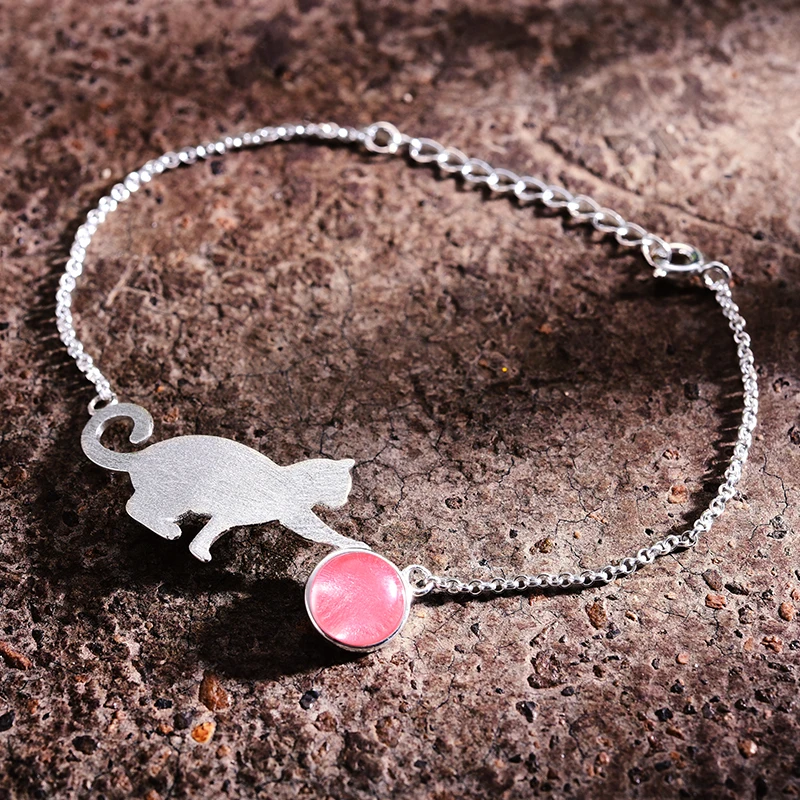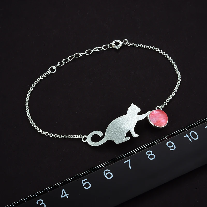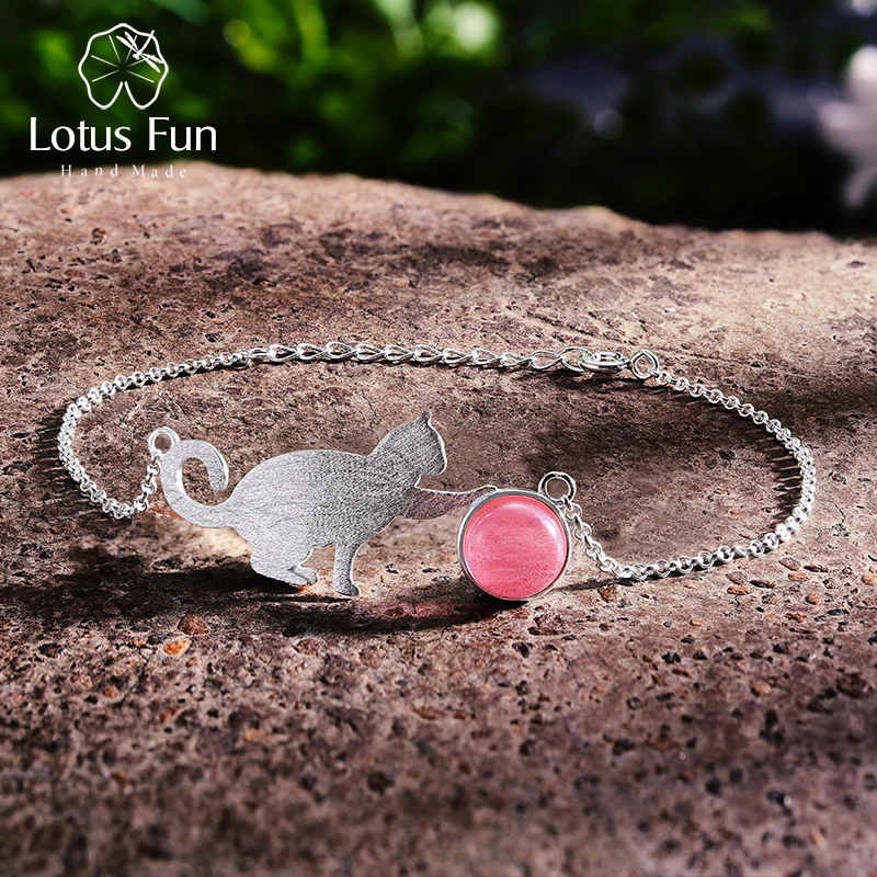 Product Name: Lotus Fun Plata de Ley 925 auténtica piedra Natural creativa hecha a mano joyería fina juego gato moda pulsera para mujer Bijoux