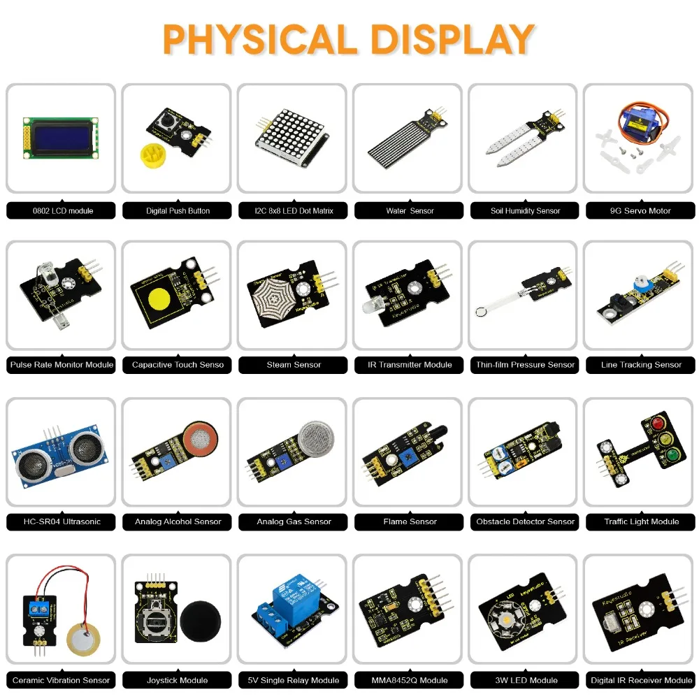 Product Name: ¡Lo más nuevo! Kit de iniciación de sensores keyesstudio 48 en 1 con caja de regalo para proyectos Arduino DIY (sensores de 48 Uds.)