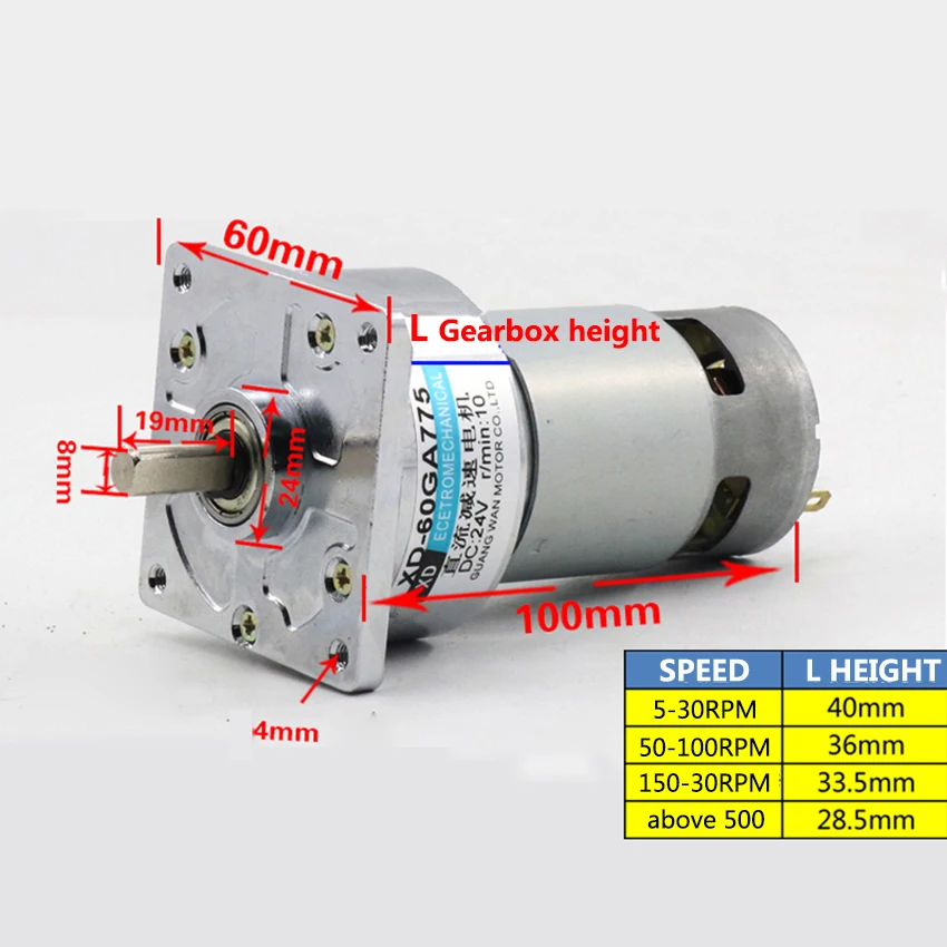 Product Name: Motor de engranaje 775 12V micro motor pequeño 35W motor de alta velocidad de torsión motor de 24V CC de velocidad lenta 60*100MM XD 60GA775