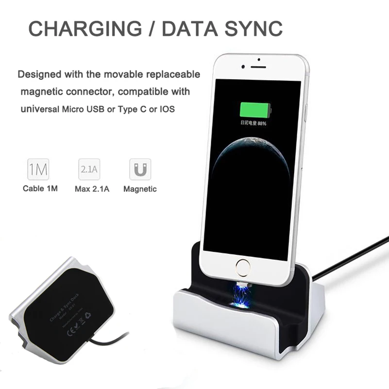 Product Name: Cargador Universal magnético Adsorb cargador sincronización Estación de muelle cargador magnético soporte base para iPhone 6 6 s 7 8 Plus micro USB tipo C