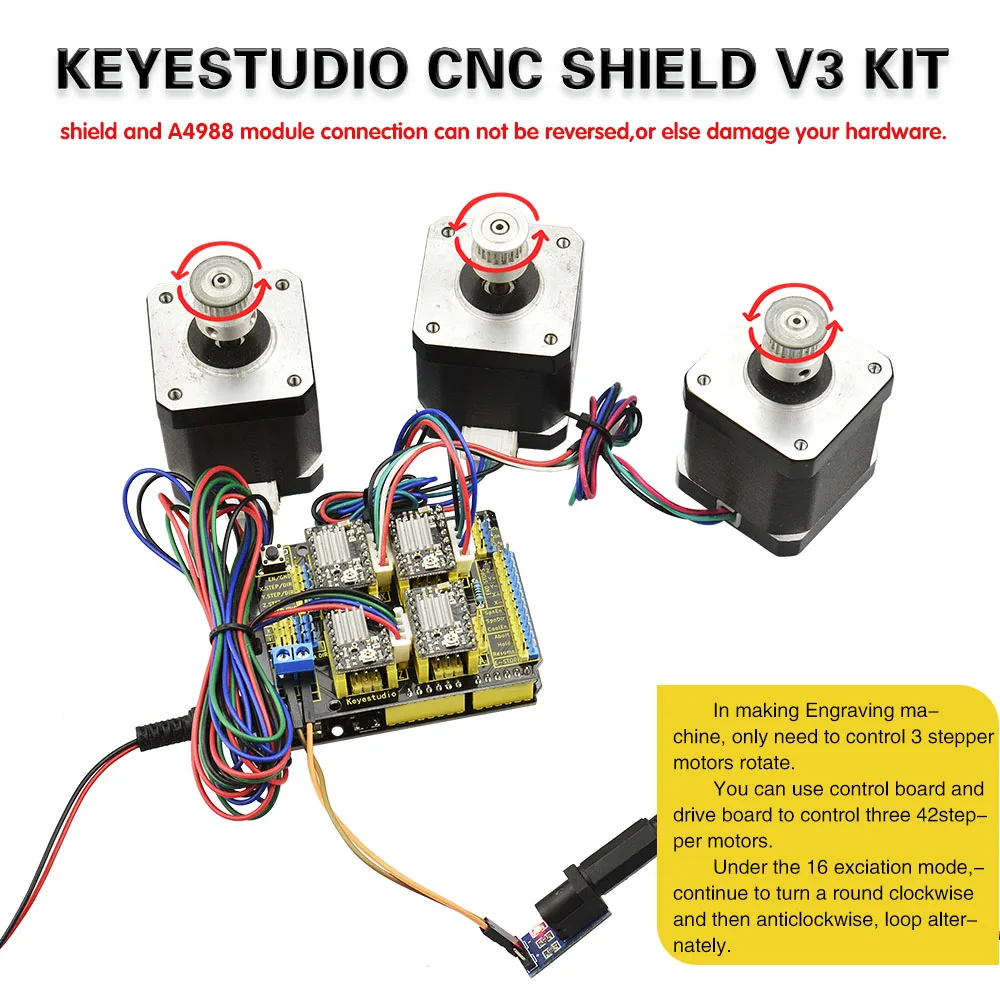 Product Name: Envío Gratis! Keyestudio CNC kit para arduino CNC escudo V3 + UNO R3 + 4 Uds A4988 conductor GRBL compatible