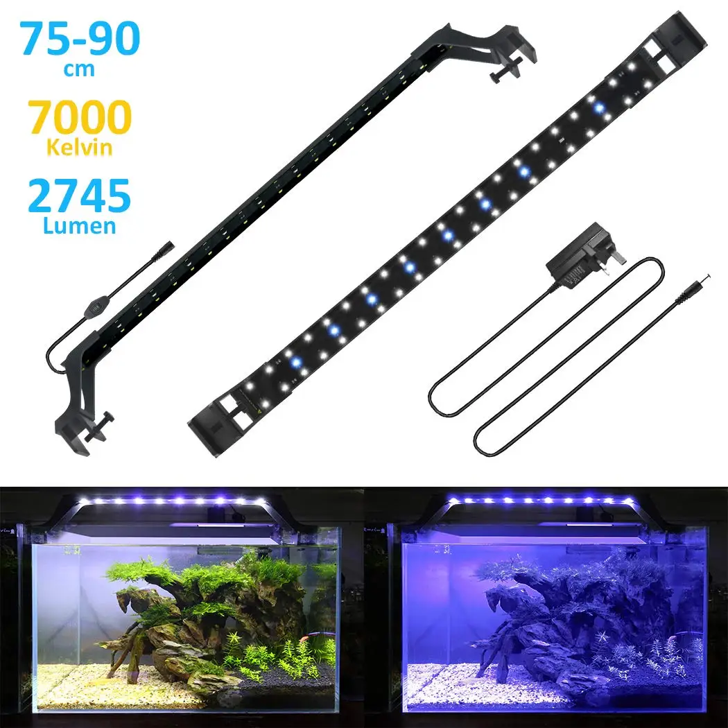 Product Name: Delgado acuario con LEDs iluminación planta acuática luz 75 90CM Extensible impermeable Clip en la lámpara para pecera