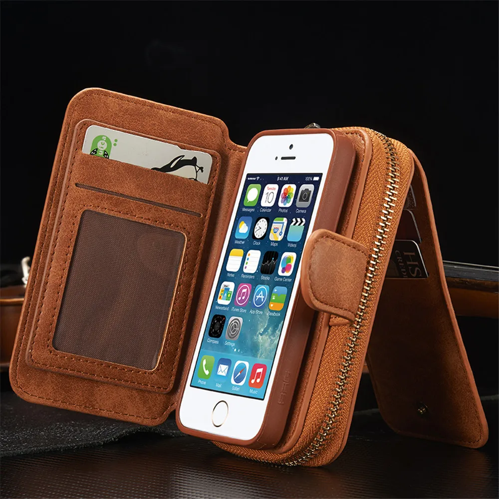 Special Offer Para iPhone 11 pro max Funda de cuero con cremallera de lujo para iPhone 5S 6s Plus 7 8 Plus X Xr Xs funda magnética máxima ranuras para tarjetas múltiples Discount 13% Today!