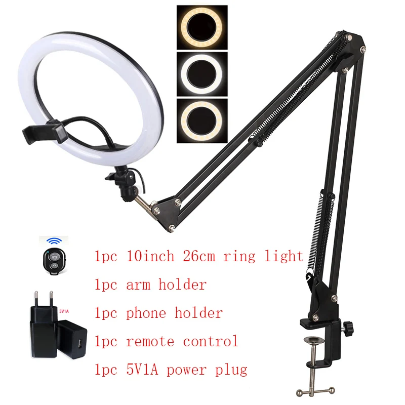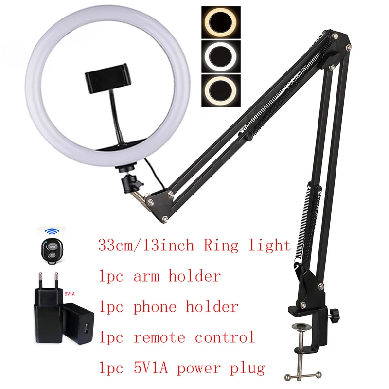 Product Name: 16cm 26cm 33cm anillo de luz con soporte de mesa wahite amarillo 3 colores luces 1 pieza soporte de teléfono y mando a distancia 5V1A enchufe de la UE