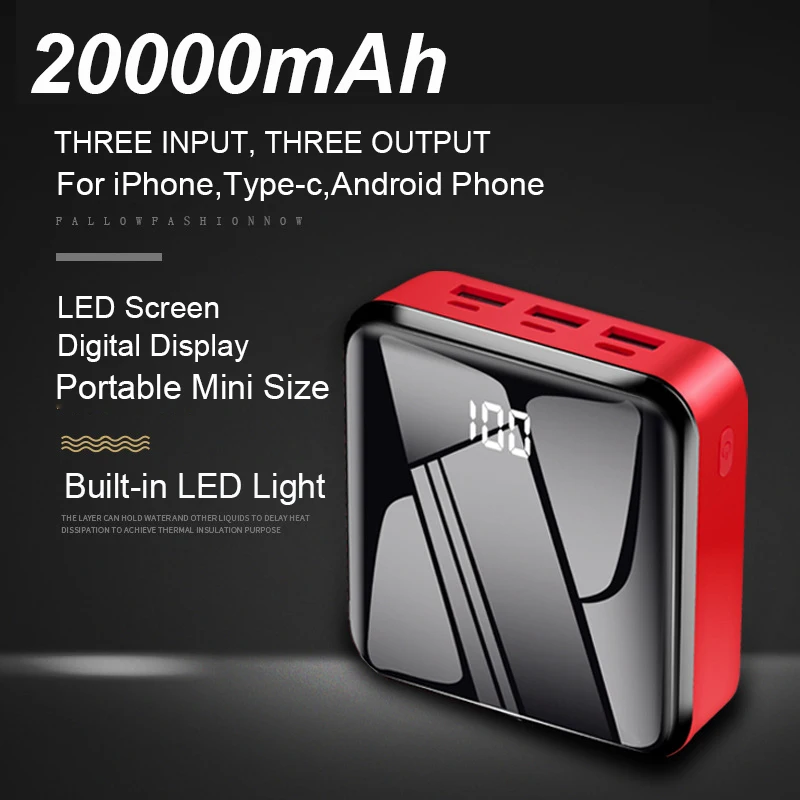 Special Offer 20000 mAh espejo pantalla Mini externa del Banco de potencia portátil de la batería externa 20000 mAh carga rápida Poverbank para teléfono móvil Discount 30% Today!