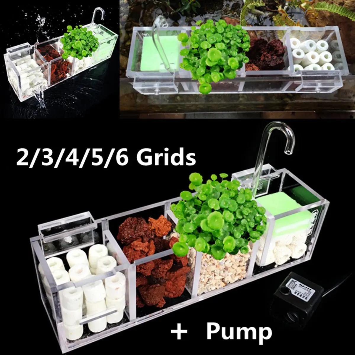 Special Offer Caja de filtro de acuario de acrílico, bomba de agua, purificador de agua externo colgante, accesorios de filtros de jaula para mascotas acuáticas, 2 6 rejillas Discount 44% Today!