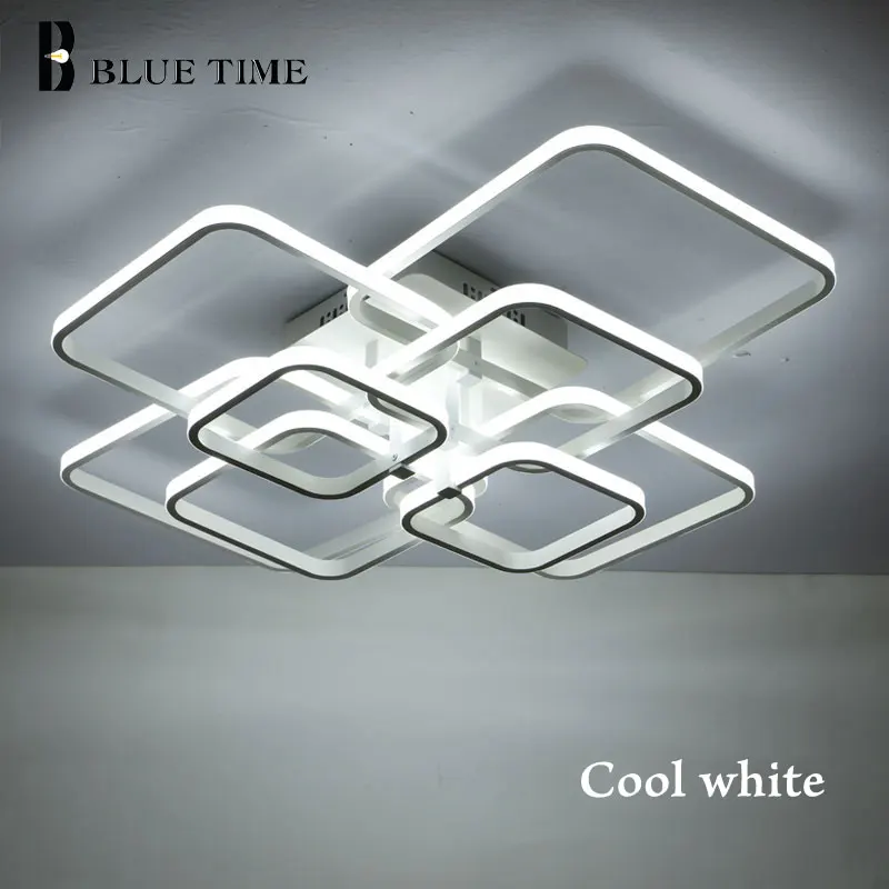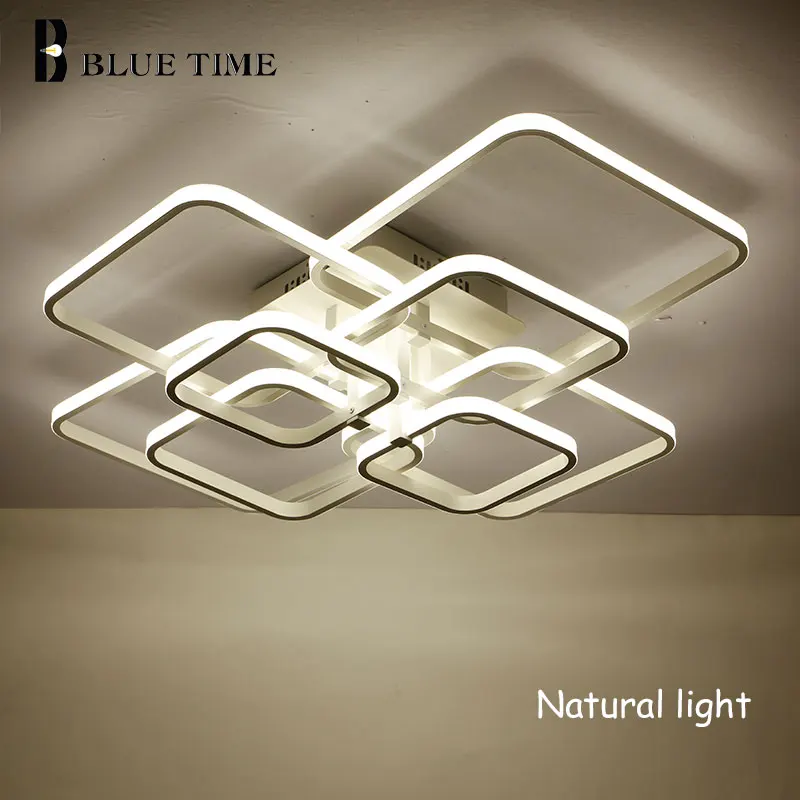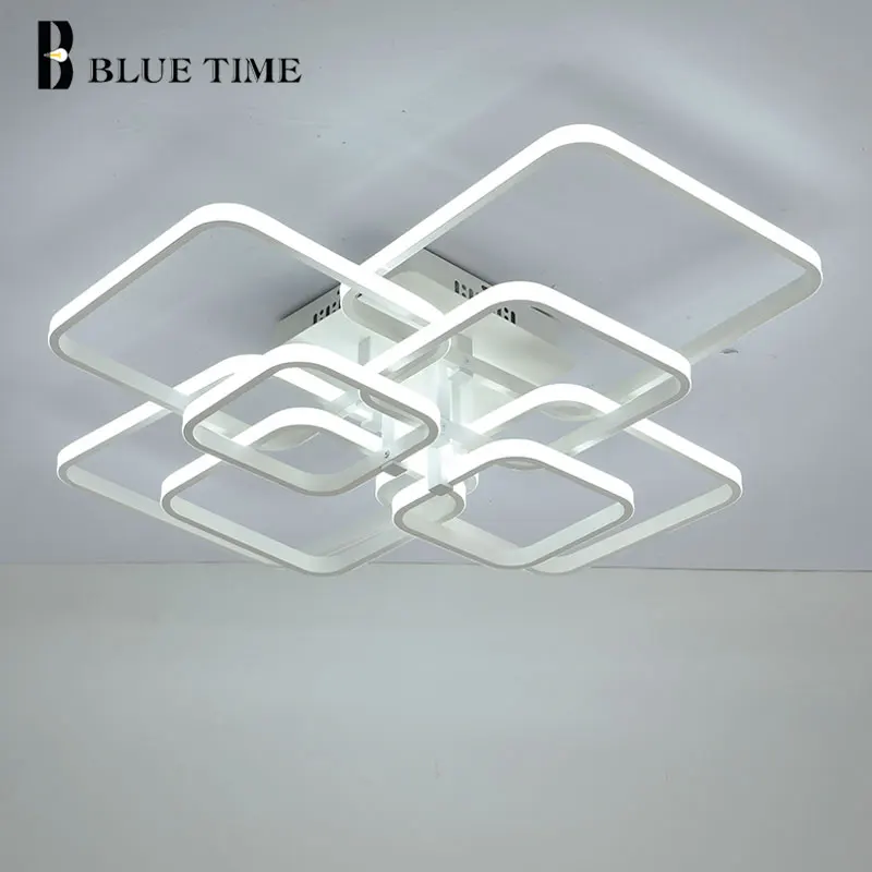 Product Name: Nuevo Marco de anillos cuadrados moderno Led luces de techo para sala de estar dormitorio brazos blancos o negros techo iluminación accesorios AC85 260V