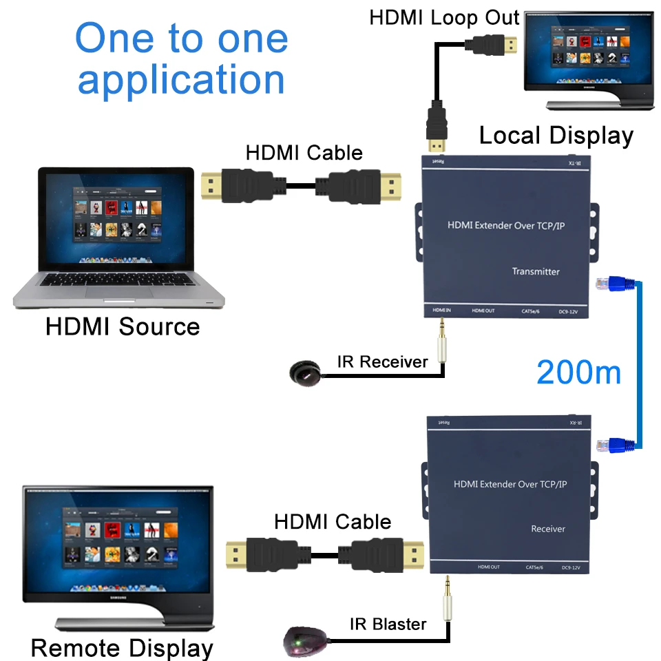 Product Name: 2020 660ft IP red HDMI extensor con IR 1080P HDMI Extender transmisor receptor en CAT5e CAT6 Rj45 puertos HDMI extensor