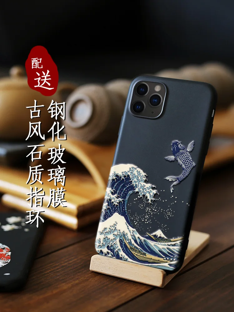 Product Name: Gran relieve caja del teléfono para Iphone XS MAX XS XR X 11 PRO MAX cubierta de Kanagawa, olas carpa grúas 3D gigante alivio para 7 8 PLUS
