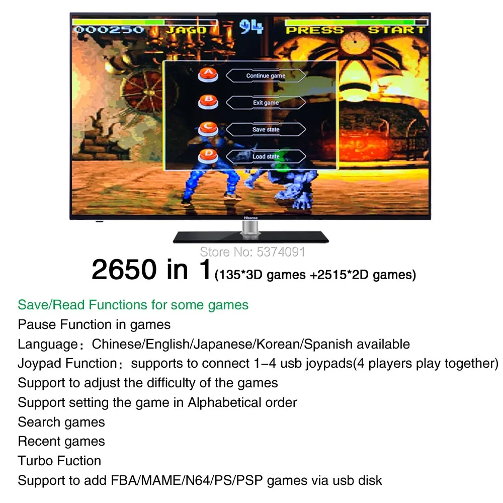 Product Name: 3D Pandora Saga Box 2650 en 1 Placa de versión familiar 40p arcade PCB para jugar gratis Coin HD video Jamma juegos HDMI VGA placa base
