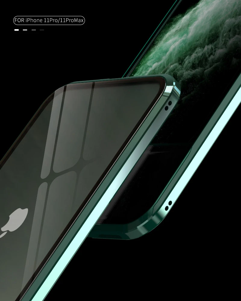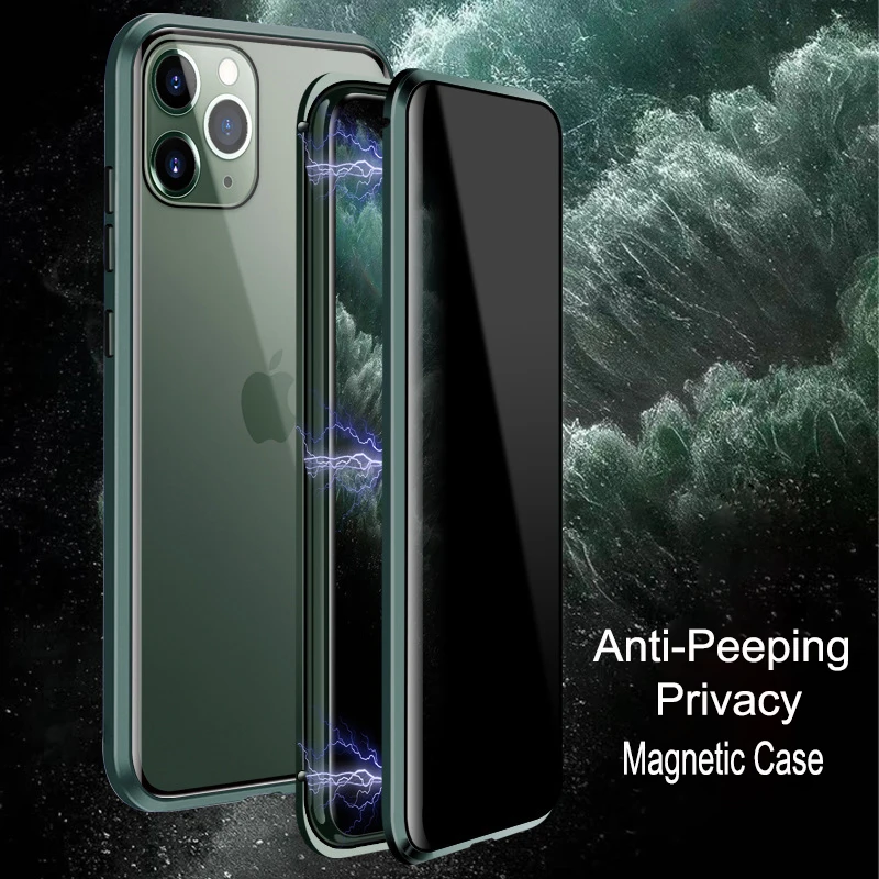 Product Name: Para iPhone 11 Pro Max funda de lujo magnética antideslizante frontal vidrio templado 360 imán antiespía funda protectora Coque