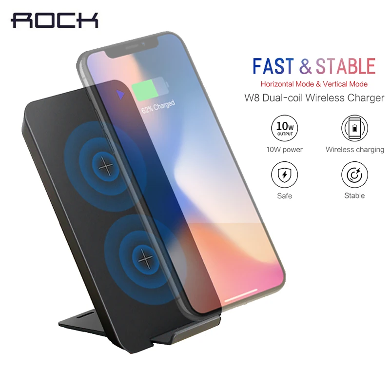 Special Offer Cargador inalámbrico de 10 W, almohadilla de soporte de carga inalámbrica rápida de bobina dual negro ROCK para iphone para dispositivo samsung envío gratis Discount 30% Today!