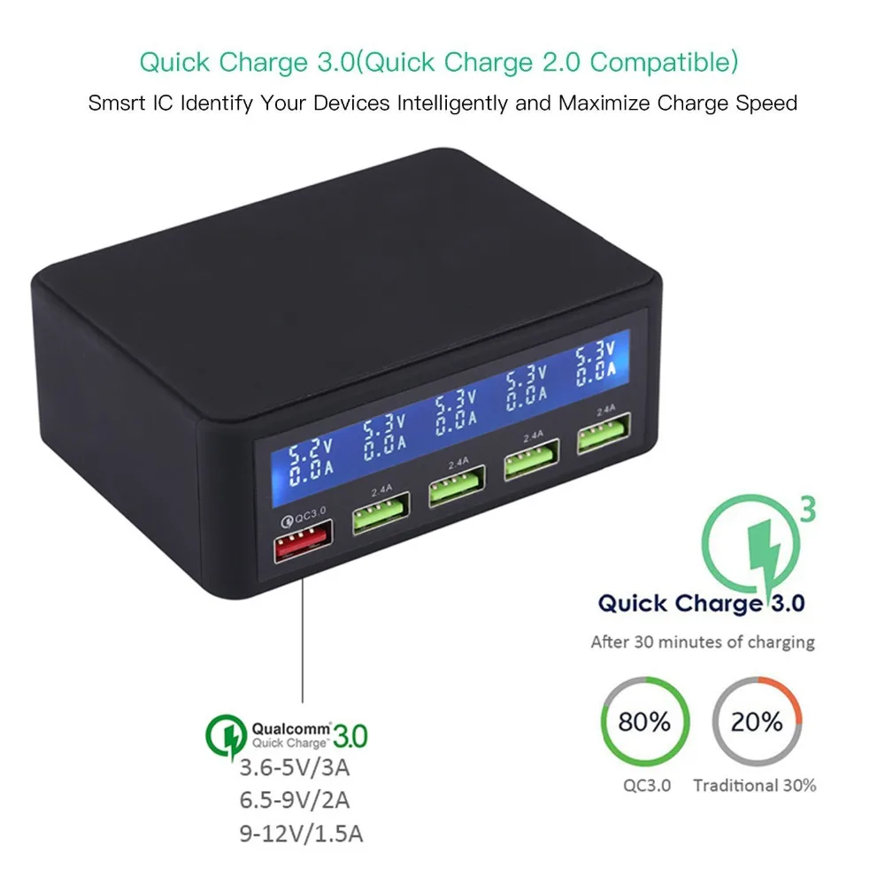 Product Name: AIXXCO cargador rápido USB 40W pantalla LED de 5 puertos carga rápida 3,0 cargador rápido estación de carga de escritorio iPhone X 8 7 6, iPad