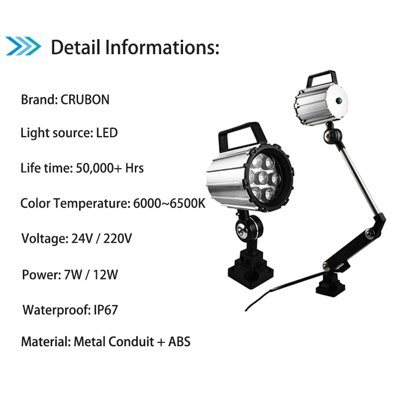 Product Name: CRUBON 7 W 12 W 24 V 36 V 220 V impermeable IP65 CNC máquina de luz LED para herramientas industriales de trabajo lámparas de luz de brazo largo luces plegables