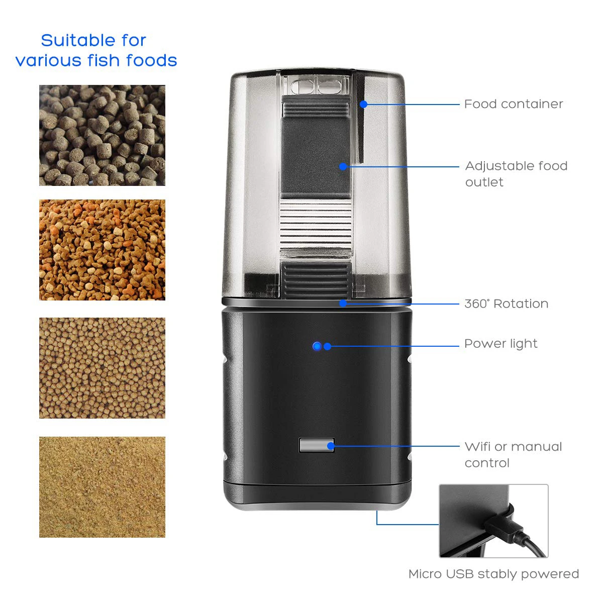 Product Name: YYAQUA 175ml WIFI programable automático alimentador tanque de peces de acuario alimentador con temporizador automático de alimentos para peces WIFI Control de aplicaciones móviles