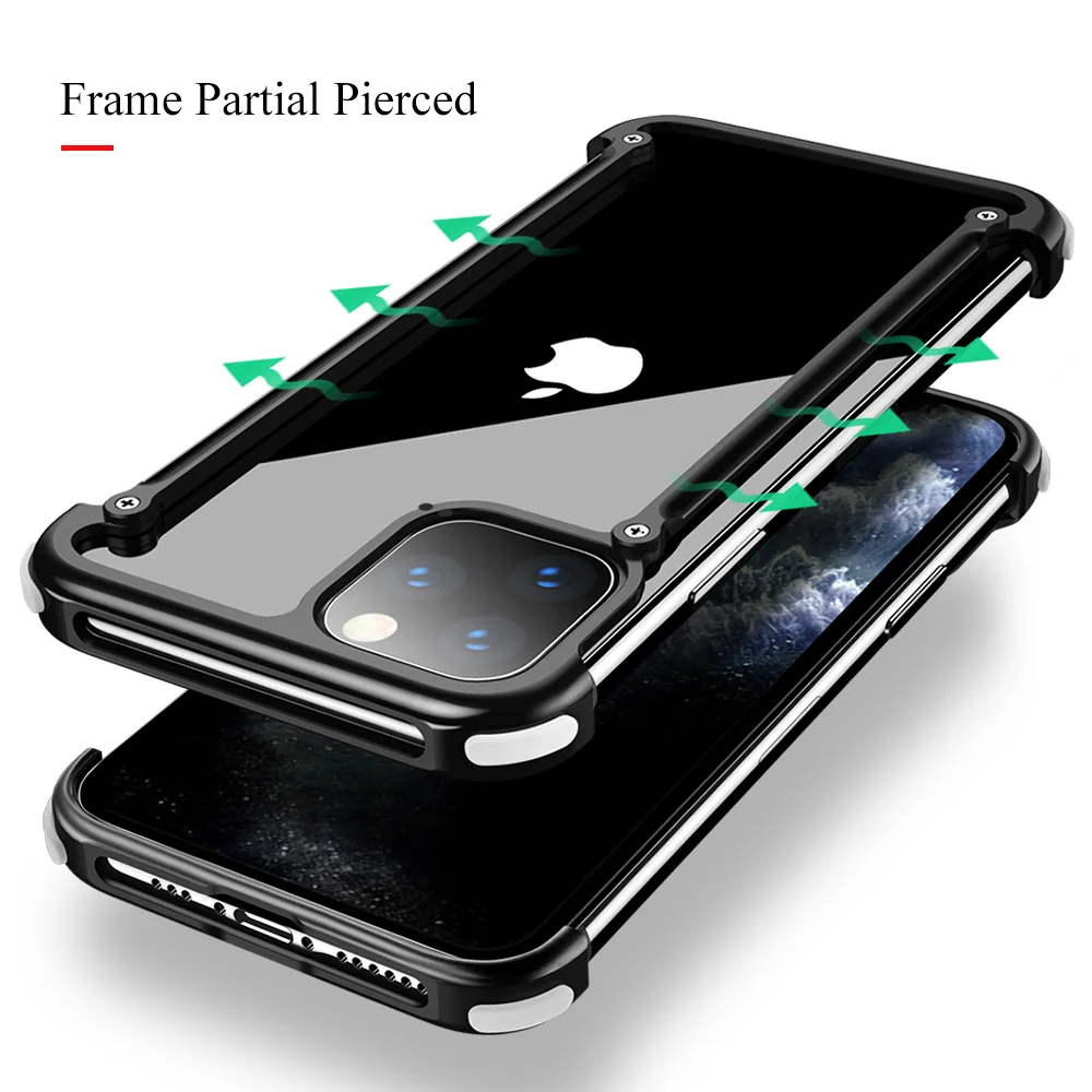 Product Name: Lujosa carcasa de Metal con bolsa de aire a prueba de golpes funda de teléfono original para Iphone 11 11pro 11pro max funda parachoques Back Bover