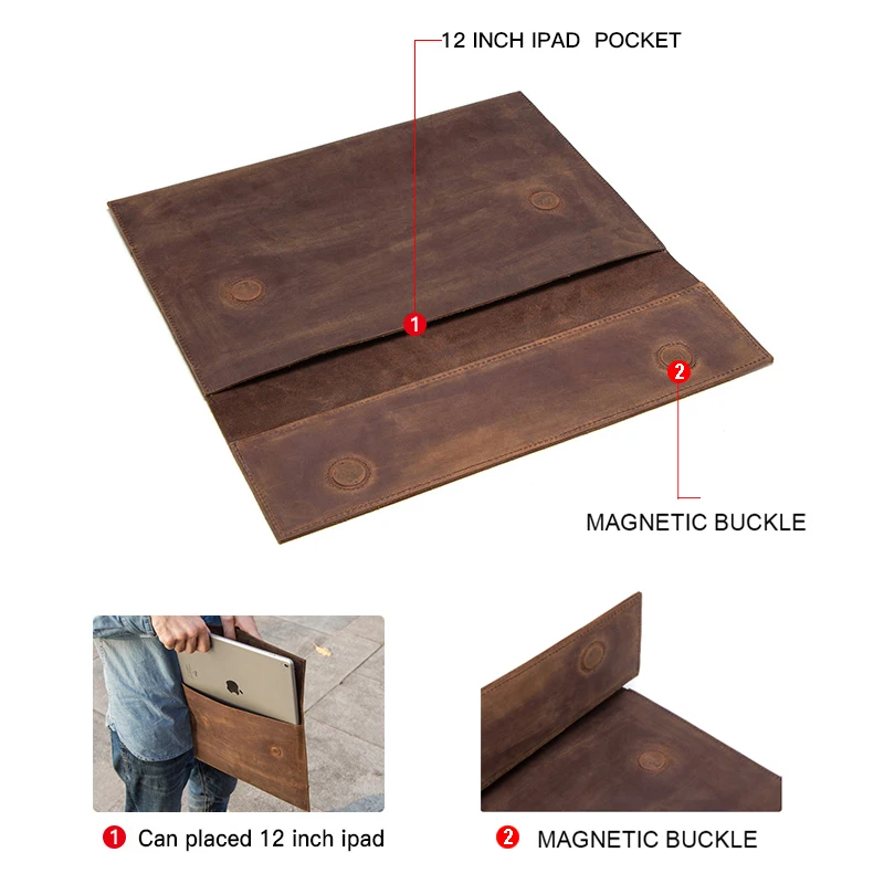 Product Name: Para iPad Pro 11 12,9 2017 2018 cuero genuino envejecido funda para Tablet para MacBook 12 pulgadas funda protectora magnética personalizada