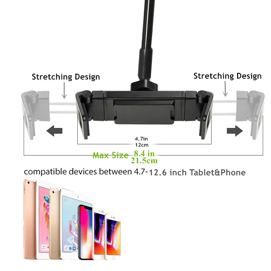 Product Name: Soporte para tableta de gran tamaño de 75cm de largo brazo cama escritorio para iPad Pro 11 soporte para tableta soporte de Clip de 4,7 a 12,6 pulgadas tableta