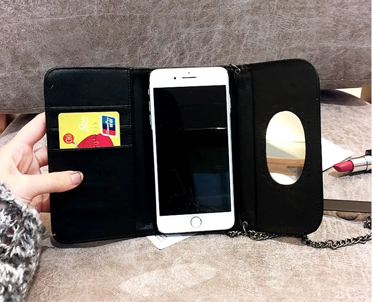 Product Name: Funda de cuero de lujo plegable con espejo para iphone XS MAX funda XR para iphone 11 Pro Max funda 7 8plus con cadena cruzada