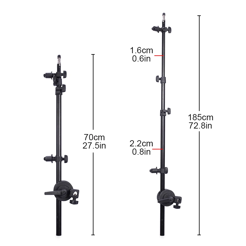 Product Name: Soporte de foto soporte de agarre 27 \" 72\" 70 185cm soporte de brazo Reflector de cabeza giratoria soporte de brazo de iluminación negro soporte de pluma