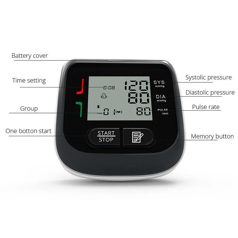 Product Name: Medidor de presión arterial portátil tensiómetro brazo Digital brazalete BP esfigmomanómetro Monitor pulso tonómetro negro
