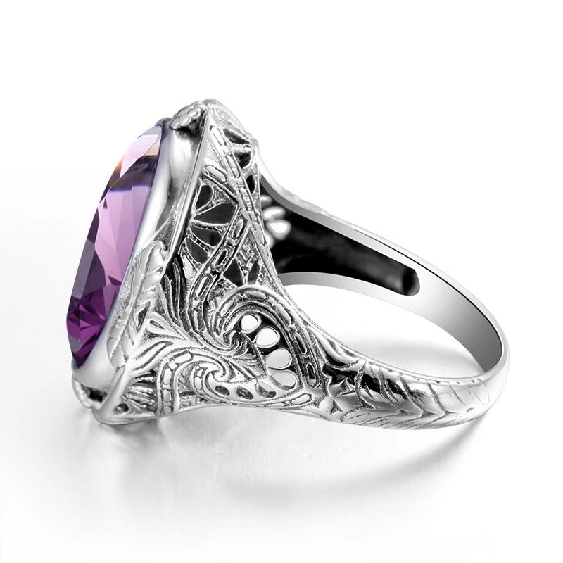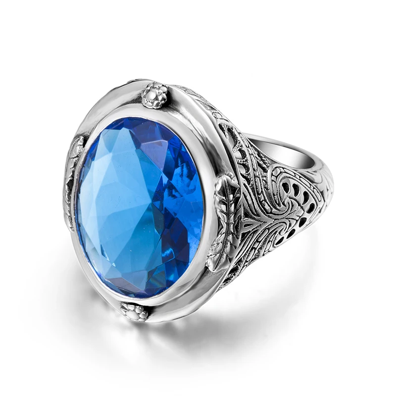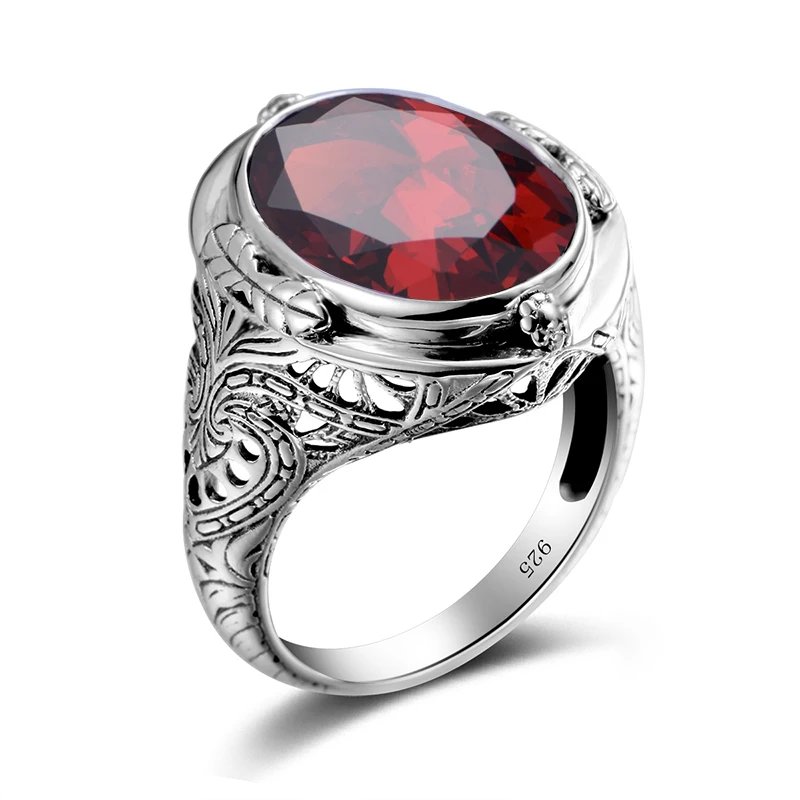 Product Name: Anillo de Plata de Ley 925 flor tallada Vintage creado rubí CZ aguamarina piedra preciosa hombres cóctel anillo de dedo joyería fina