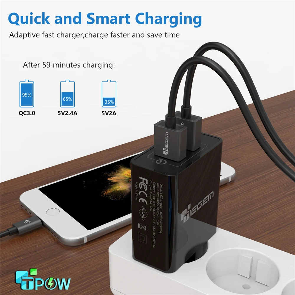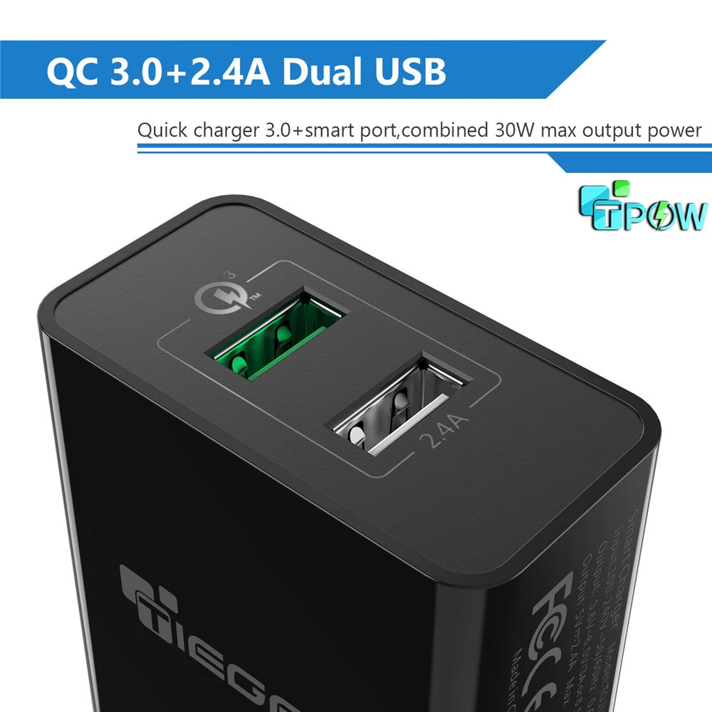 Product Name: TIEGEM 30 W rápida Carga rápida 3,0 + 2.4A Dual USB cargador Universal de teléfono móvil UE enchufe para samsung Huawei Xiaomi LG