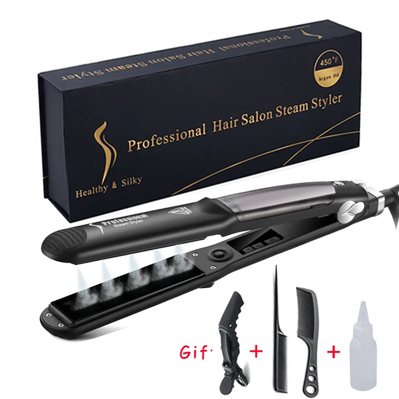 Product Name: Plancha de pelo de vapor de aceite de argán profesional plancha plana de vapor de cerámica 450F planchas alisadoras para el pelo herramientas de estilismo