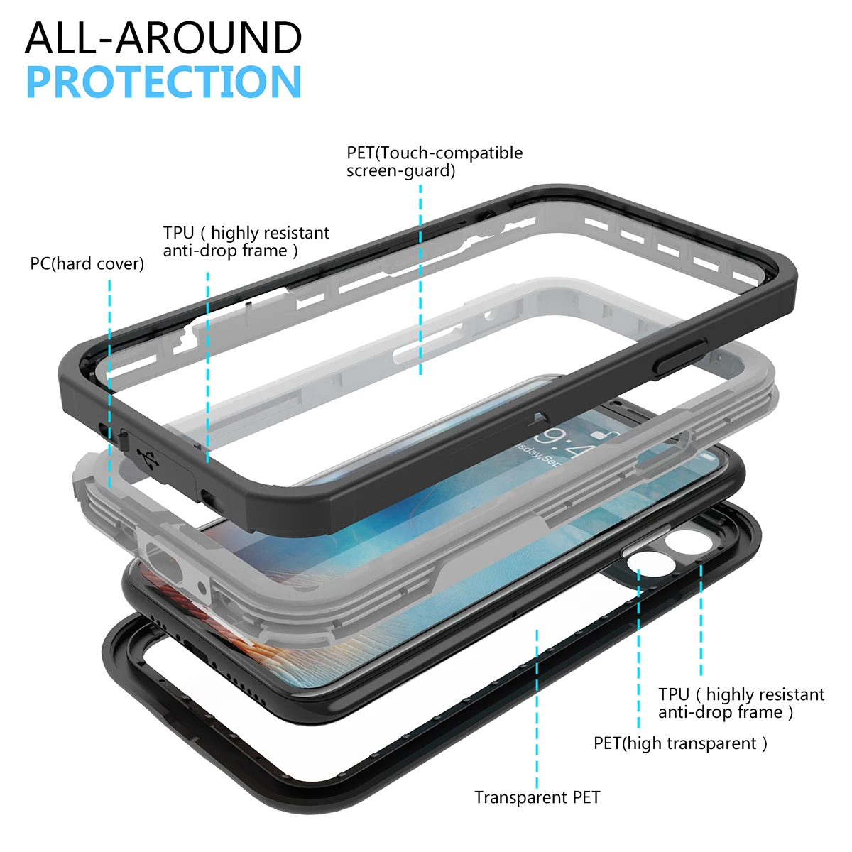 Product Name: Para iPhone 11 11 Pro 11 Pro Max funda IP68 impermeable Protección deportiva de 360 grados cubierta subacuática para iPhone 11 funda a prueba de golpes