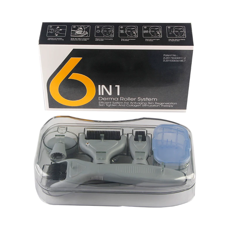 Product Name: ¡Caliente! CE ISO aprobado rodillo Derma 6in1 para área estrecha cara de ojos cuerpo belleza piel Dermaroller con 4 cabezas de aguja de titanio
